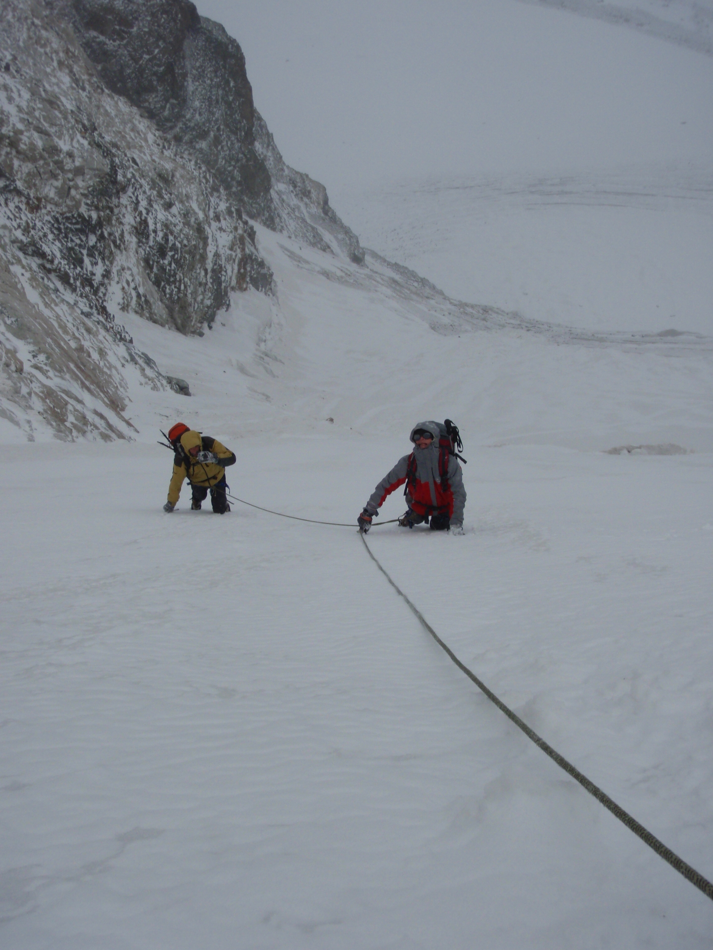 La bufera diminuisce d’intensità. Siamo ormai al Passo Marinelli e finalmente il sole trafigge le nubi nere che si allungano verso sud. Il riverbero è accecante, brillano i cristalli di neve fresca, resi dal vento tondeggianti come minuscole palline di polistirolo; luccicano pure i cristalli di mica che tempestano i massi di granito sparsi sul ghiacciaio. Con Bénédicte e Daniel siamo sfuggiti alla tormenta scendendo rapidamente, tra i turbini di neve, il Canale di Cresta Guzza. Niente Bernina per questa volta…Mic
