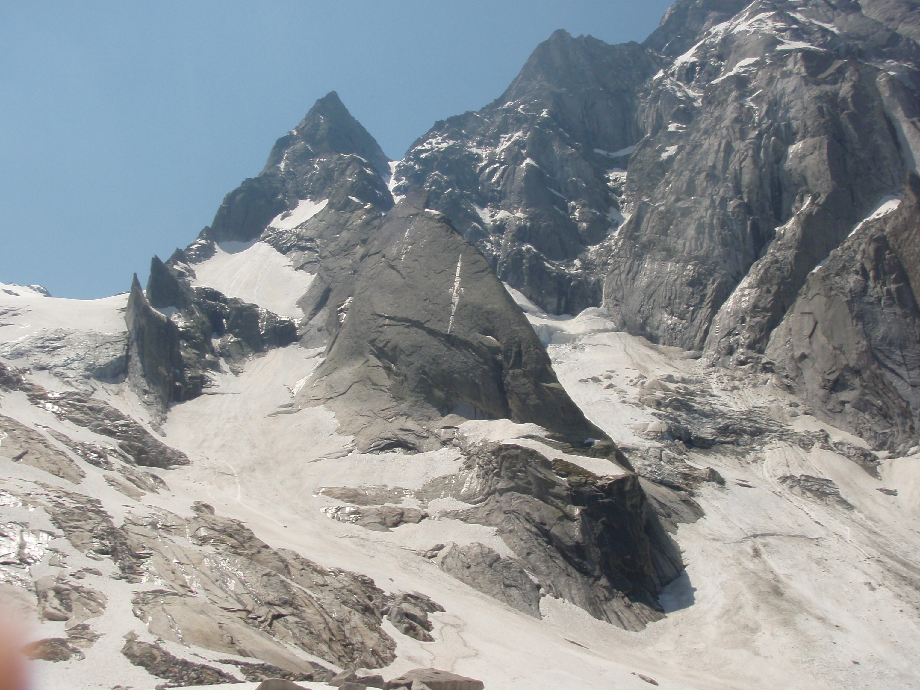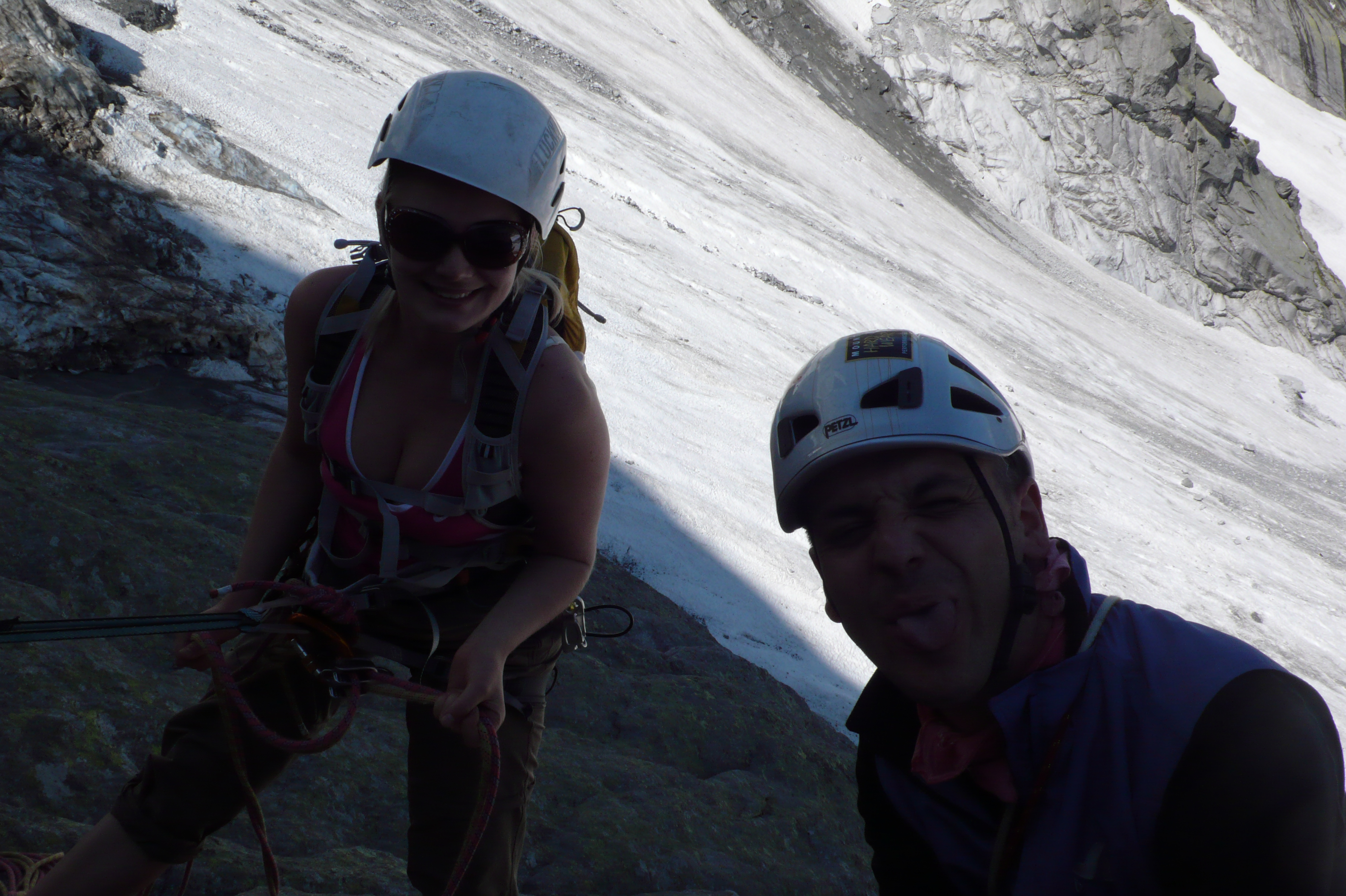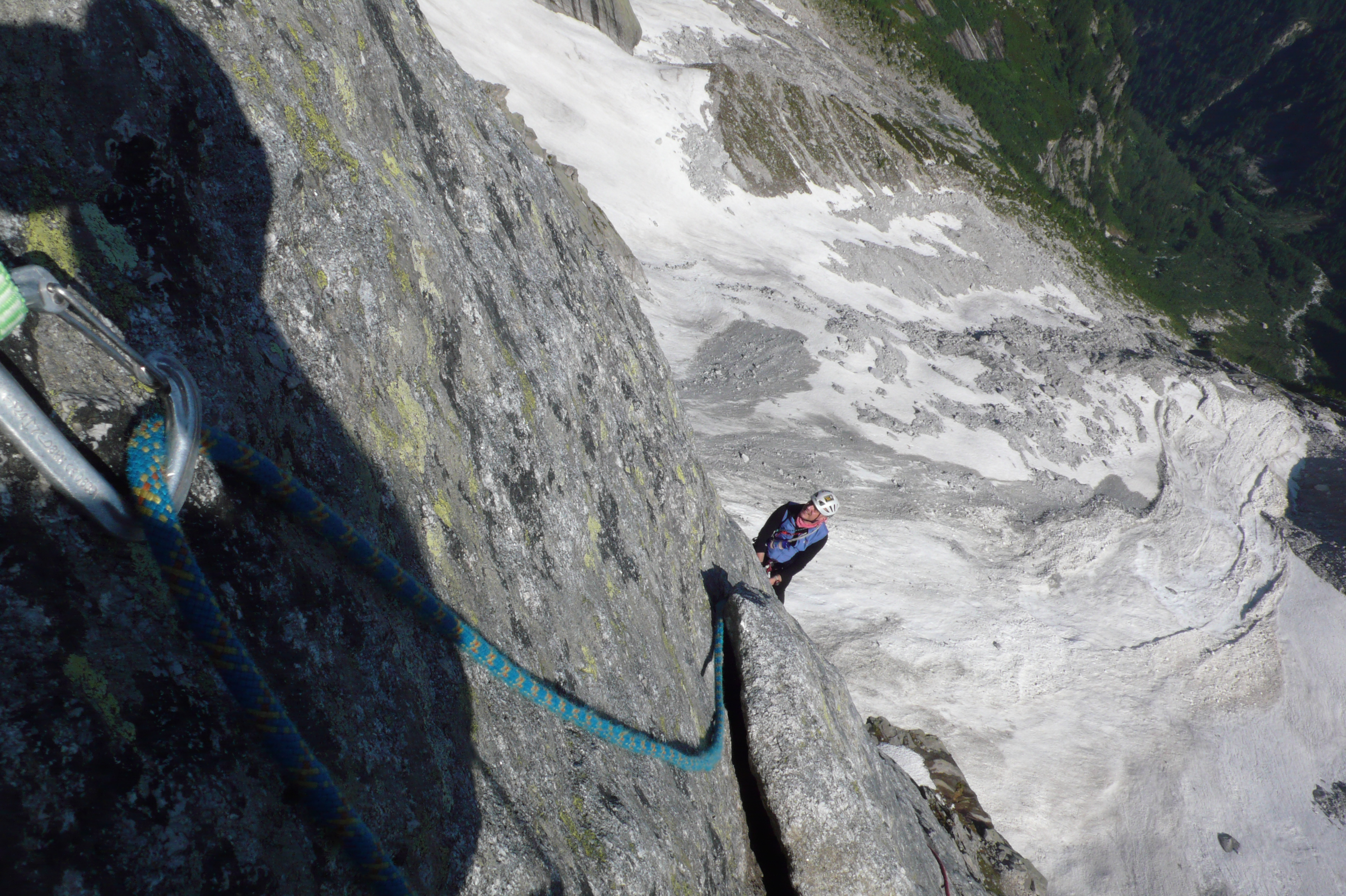 Con la cappa di calore di questi ultimi giorni l’arrampicata in quota risulta particolarmente gradevole. La via Ferro da Stiro è una classica della Bondasca; si sviluppa su un granito eccellente, lungo un ampio spigolo con difficoltà omogenee, mai troppo elevate, in un ambiente superbo. Grazie alla velocità di Gianni, abbiamo largamente evitato il temporalone pomeridiano. Piacevole la presenza in parete di una simpatica alpinista svedese! Mic