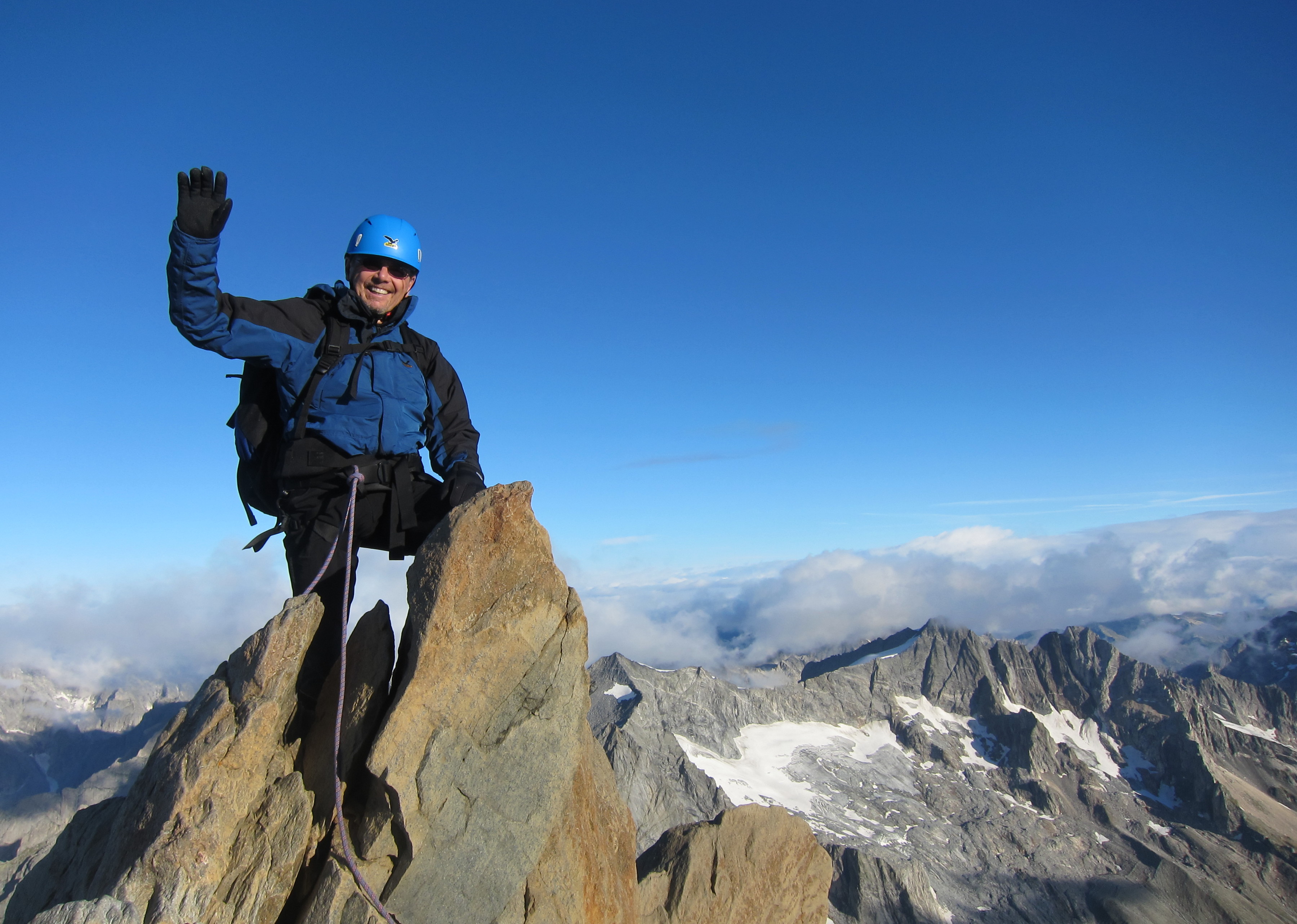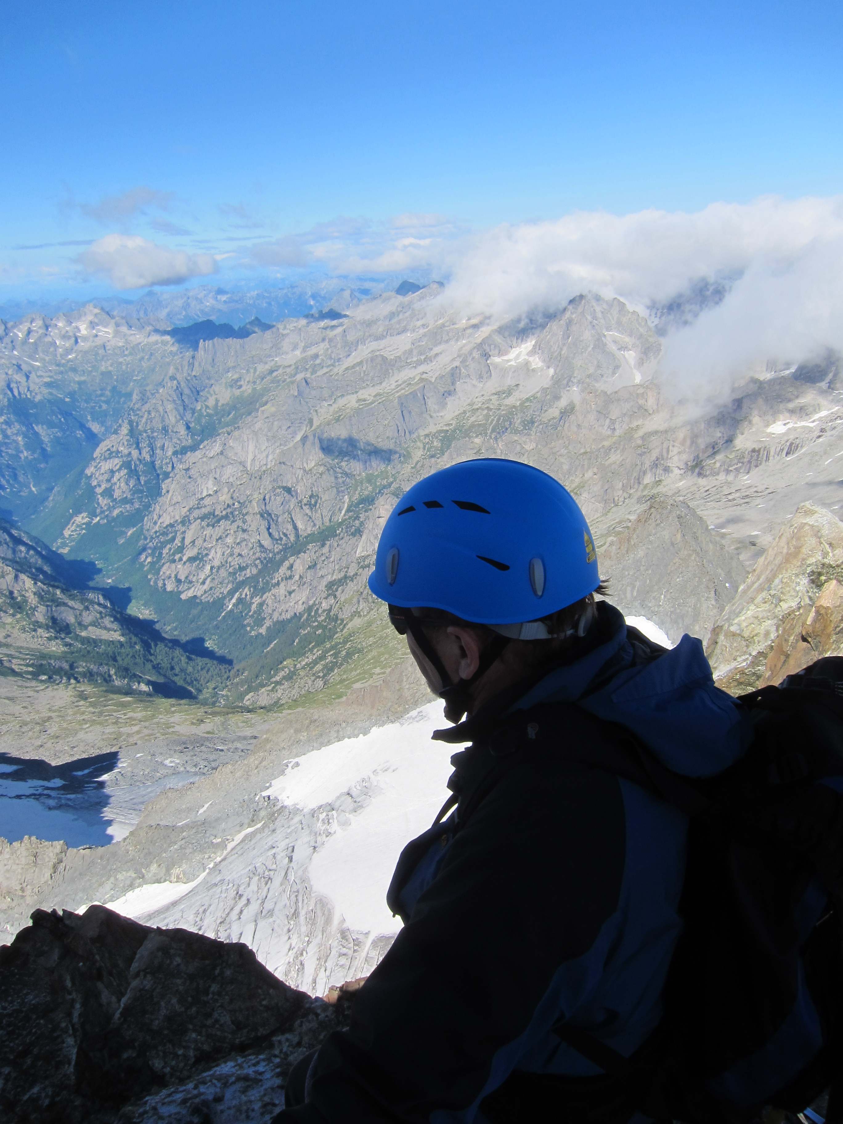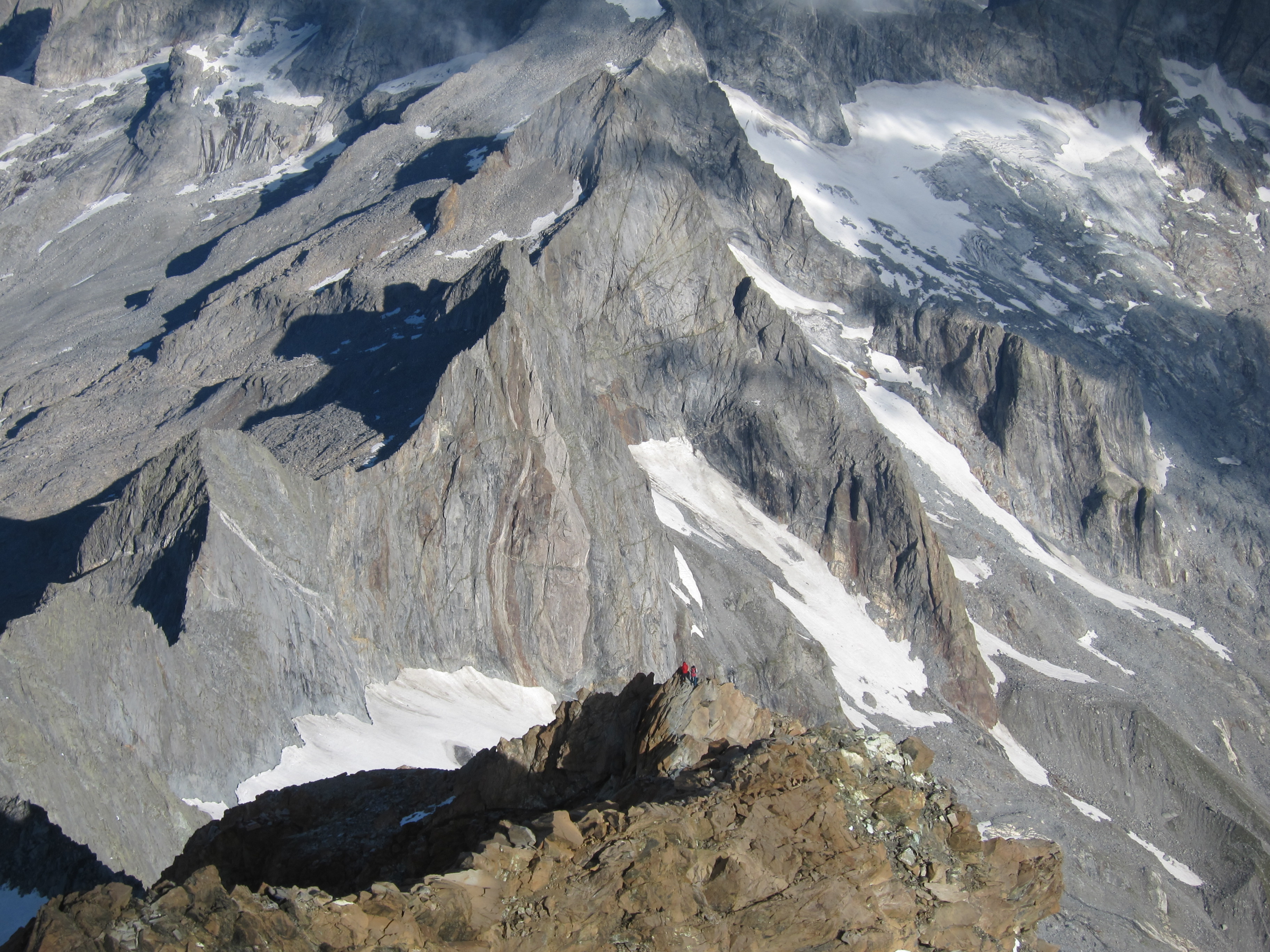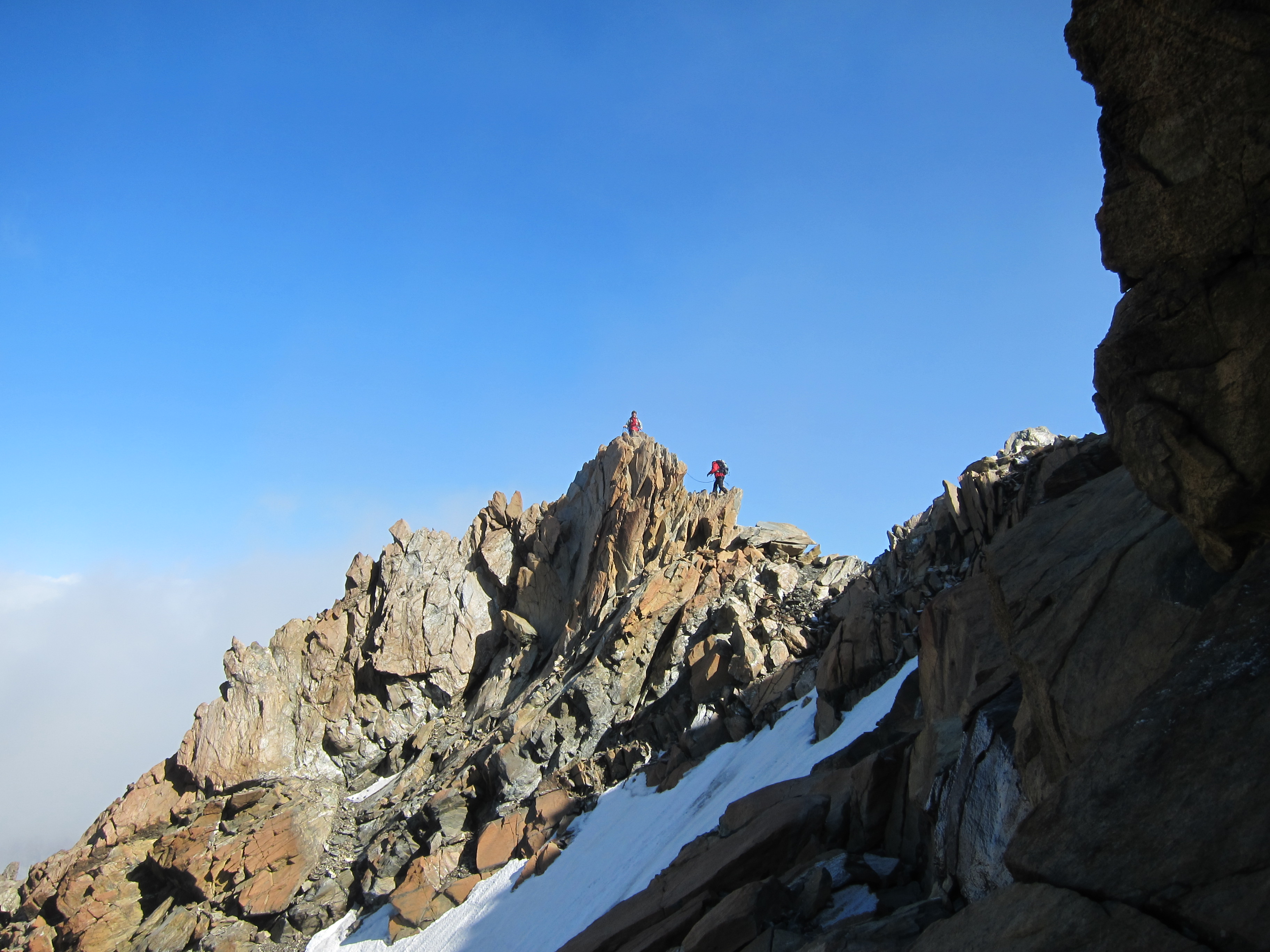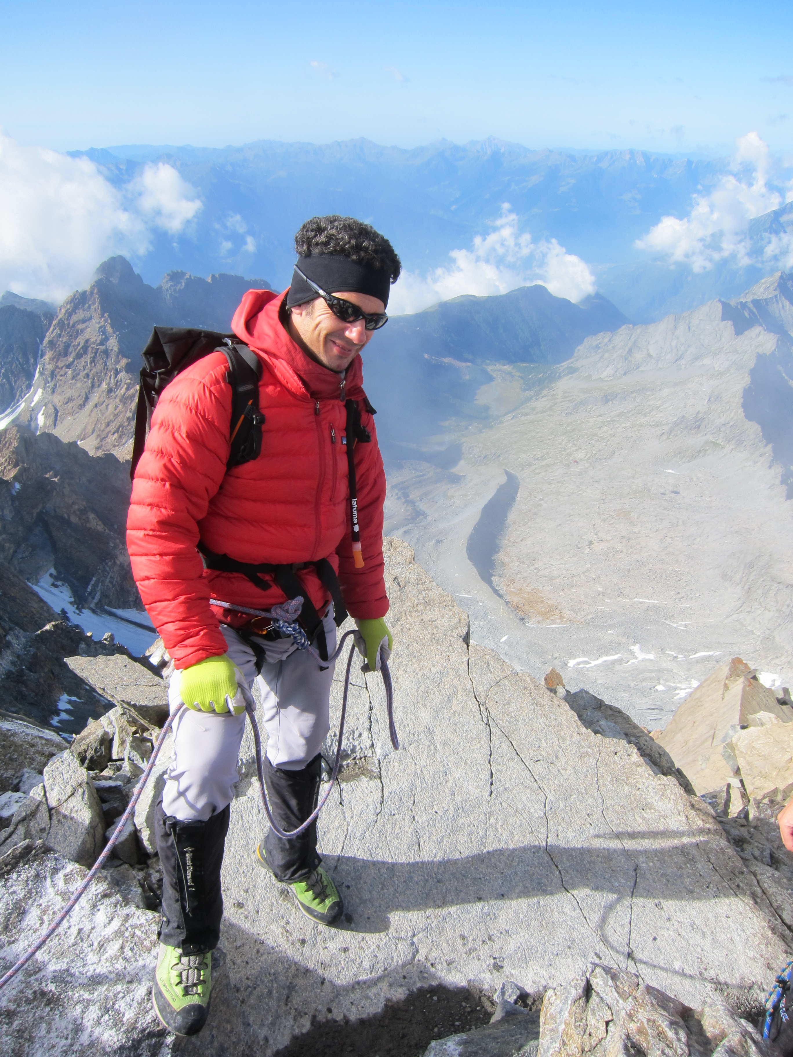 “We were rounding the western shoulder of the outlying buttres upon our left… when behold the peak appeared. It is a glorious peak, rising right in front…”. Agli occhi dei viaggiatori inglesi inventori dell’alpinismo questa inviolata montagna glaciale apparve come meravigliosa. Stupore e meraviglia suscita ancor oggi, ormai 150 anni dopo la prima salita. Ottima l’ascensione in compagnia di Corrado, ormai contagiato dalla passione per l’aria sottile, tra nebbie e possenti vortici d’aria. Mic