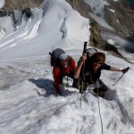 Bella coppia quella di Alberto e Rita che, quatti quatti, con grande allenamento e umiltà, si sono portati a casa, in una favolosa due giorni, il prestigioso concatenamento dei Pizzi Palù e del Bernina. Partenza con la prima funivia del Diavolezza alle 8 e mezza del mattino, arrivo con temperature californiane alla Marco e Rosa verso le 5 del pomeriggio, giusto pronti per un bell’aperitivo. Levata antelucana e partenza mattutina accompagnata da un ventone caldo e tempestoso che ha spaventato i più, con raggiungimento del Piz Bernina (cresta senza ramponi) appena prima delle otto. Discesa al rifugio e di nuovo al Diavolezza, via Fortezza, per la comoda funivia della sera. Grazie ad Alberto che ha voluto salire con me il Bernina, rispolverando i vecchi tempi di quando eravamo compagni alle scuole elementari di Chiesa in Valmalenco negli ormai lontani anni sessanta e complimenti alla graziosa e sportiva moglie Rita. Masescu