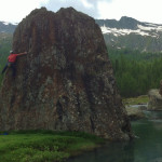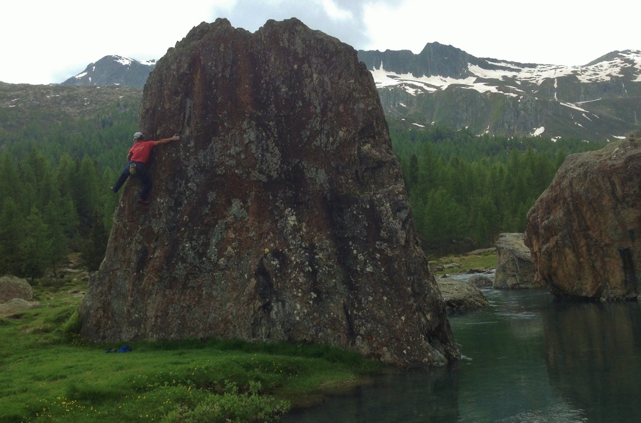 Nelle foto: bouldering sugli incredibili massi di serpentino nei pascoli della piana d’Airale nei pressi del rifugio Bosio e cordata sulla nord del Cassandra.