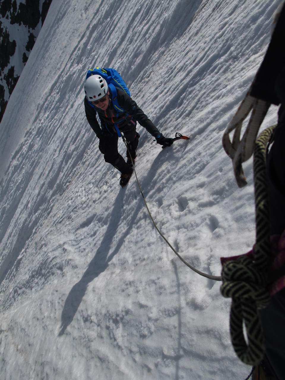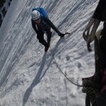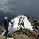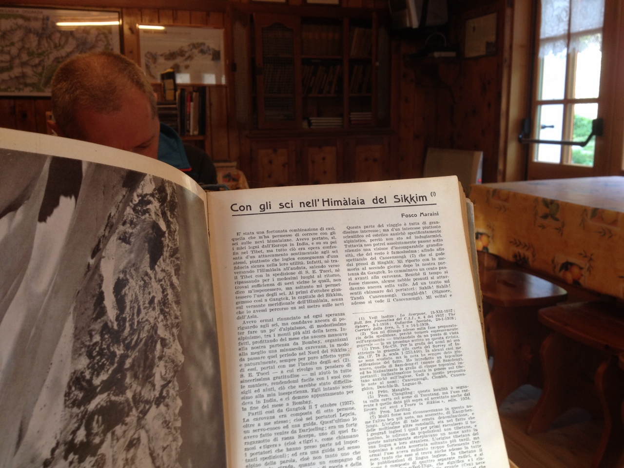 La bellezza del rifugio sta nella sua diversità da ciò che si trova al piano. Quelli che guardano più alla valle che alla montagna, anche se addobbati di ogni confort e menù da gourmet, si possono al massimo definire punti di ristoro d’alta quota, senza magia e senza stupore. Il rifugio prende le distanze dal quotidiano, così come avviene nella piccola sala rivestita di gembro profumato del rifugio Gerli Porro. Siamo gli unici ospiti, la libreria boiserie contiene una pregevole raccolta dei notiziari del Club Alpino a partire dal 1880 e i vecchi libri del rifugio. Si sfogliano le pagine ingiallite con le firme di mille avventori, alpinisti e nomi celebri. Gianni si emoziona ritrovando la sua da ragazzo del 1960 e un anno dopo quella di Kurt Diemberger, mito dell’alpinismo e unico vivente ad aver scalato in prima assoluta due vette di ottomila metri, diretto alla nord del Disgrazia. I notiziari rilegati sono un concentrato di storia di scalate, le pagine scorrono veloci tra resoconti di prime salite alpine ed extraeuropee, con i giorni grandi dell’alpinismo di Cassin, Comici, Bonatti e tanti altri. La sera è luminosa e dalla finestra rivolta al ghiacciaio del Ventina osserviamo la nostra salita dell’indomani, che mira dritta alla vetta del Cassandra.
