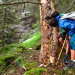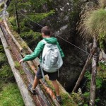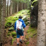 Lo stupore di una camminata con meteo incerto, tra pioggia e schiarite, nasce dall’accentuazione dei profumi del bosco, dalle luci inconsuete e dal colore vivido di felci e muschi saturi d’acqua. Se a ciò aggiungiamo un percorso selvaggio come quello delle gole dello Scerscen ecco che ci ritroviamo in un percorso inedito e tutto da scoprire. Da Franscia (1500m) il tracciato si sviluppa in buona parte lungo un esposto saliscendi tra le rocce a picco sulla forra scavata dal torrente Scerscen, che raccoglie le acque di fusione dei ghiacciai del Bernina, attraversa boschi sospesi d’abeti degni della miglior saga dei Troll, popolati di funghi, tane e rane. Qualche passaggio d’arrampicata e un ponticello aereo conducono verso l’antico alveo “morto” del torrente, dove si continua lungo un vero e proprio canyon roccioso ormai colonizzato dalla vegetazione, fino a sbucare sulle radure che preludono alla grande spianata alluvionale di Campascio (1850m), poco sotto l’Alpe Musella (2021m).