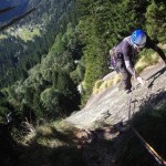 Degno inizio dell’autunno mellico, la miglior stagione per l’arrampicata nella valle di granito, con la salita di Uomini e Topi con la variante Baader (Meinhof) alle poco frequentate Placche dell’Oasi. Qui si trovano le placche di granito più solitarie, intervallate da larici sospesi, con il piacevole rientro attraverso il bosco rado che sovrasta il sentiero dell’Alpe Pioda.