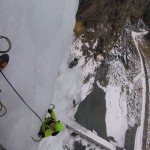 La centrale di San Giuseppe è ben formata, il ghiaccio ha un colore azzurro tenue, segno che il rialzo termico non ha ancora minato la struttura, consente alle piccozze di avere una buona presa e di entrare al primo colpo, senza fatica.