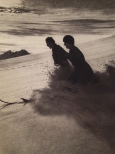 Sci al tramonto, foto tratta da “Sci e sciatori, le bellezze dello sci” – Couttet-Lunn-Petersen-Rivera 1930.