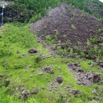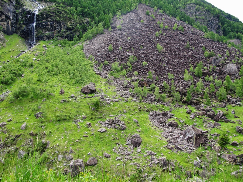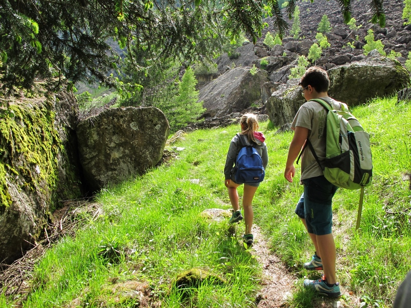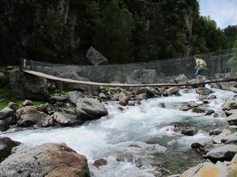 Oltrepassato il Mallero spumeggiante sul piccolo ponte sospeso e attraversato il recinto delle capre, (badando bene di chiudere il cancello), si raggiunge in breve la “ganda rùsa”.