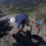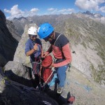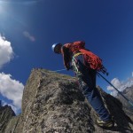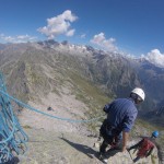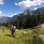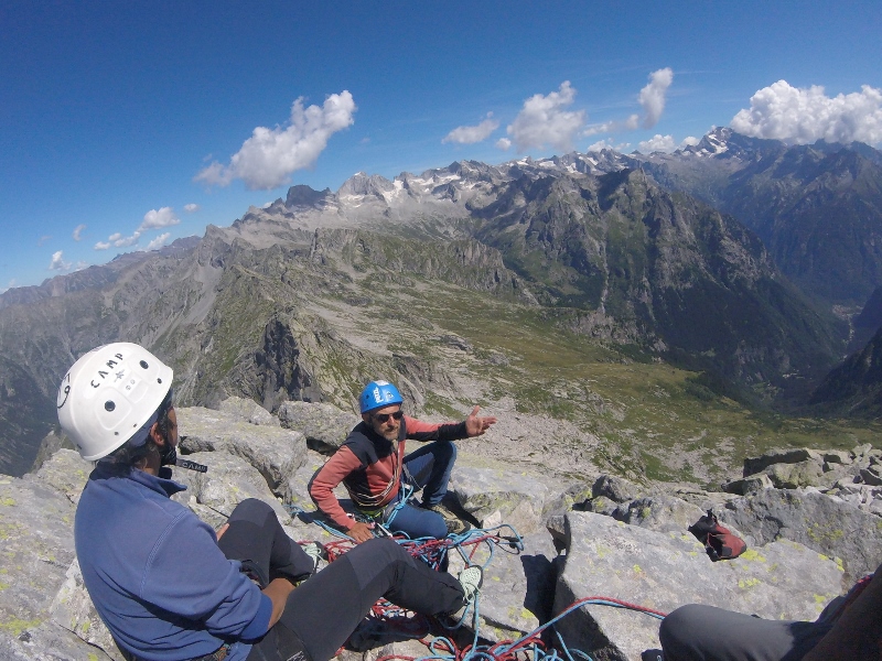 Oggi siamo scalatori ricchi di tempo, l’unica fretta è discendere prima del calar del sole. Nessun rumore, solo le sonorità dell’ambiente e senso di quiete su questa parete, a picco tra Val Masino e Val Codera. Il nostro percorso attraverso il silenzio si completa in discesa, dal larice secolare sino alla casera Ligoncio e per la vecchia e dimenticata mulattiera ricoperta d’aghi d’abete sino ai Bagni del Masino. Grazie Cris e Gra per il prezioso suggerimento di percorso!