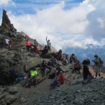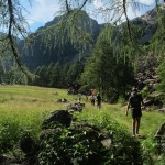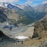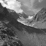 Abbandoniamo il panoramico crinale della grande morena laterale destra del ghiacciaio del Ventina per risalire la pietraia che conduce dritta al passo. La traccia si mimetizza tra i macigni e gli sfasciumi smossi dalle valanghe di primavera. Il passo conduce alla lunare Val Sassersa, e ai suoi laghi turchese. Più in basso ritroviamo le distese d’erba di Pradaccio e attraverso boschi di pino silvestre rientriamo sino a fondovalle.