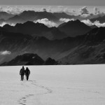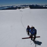 Tutte le volte che ho attraversato il vasto deserto bianco del plateau di Fellaria, oltre i 3500 m,  mi sono sempre chiesto quanti metri di neve e di ghiaccio potessero esserci sotto i piedi. Il profilo delle pareti rocciose che bordano questo importante bacino d’accumulo in quota, preziosa riserva d’oro blu, fanno ipotizzare spessori consistenti. Con le indagini condotte dal Servizio Glaciologico Lombardo attraverso l’impiego del georadar presto potremo avere dati più precisi.