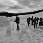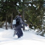 Ampi spazi silenziosi, la superficie gelata del lago, nevi diverse a seconda dell’esposizione, le radure tra i larici e l’intrico di mughi trasformano la nostra giornata in una continua scoperta.