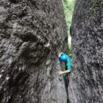 Arrampicare in Val di Mello in questo fresco intermezzo che sa di primavera, dopo settimane roventi, aiuta a sfoltire i pensieri. Il sentiero brulica di gitanti domenicali mentre le pareti sovrastanti sono deserte. Ripercorrere le vecchie classiche della valle, dal Trapezio d’Argento allo Sperone degli Gnomi al Sarcofago, seguendo le tracce nascoste a mezzacosta nel bosco da la sensazione di essere a casa. Placche, fessure e camini, alcuni friend, qualche vecchio chiodo e grandi faggi dalla chioma lucida preservano il segreto.