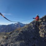 Potenti raffiche ci investono appena raggiungiamo il Passo Tre Mogge 3014m. Qui il vento di caduta scavalca le Alpi e inizia a discendere le valli, con una temperatura via via superiore a quella originaria.