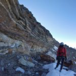 La forza del vento ci distoglie da una salita per cresta, così ci ritroviamo a circumnavigare il gruppo Pizzo Tre Mogge, Malenco, Sassa D’entova.