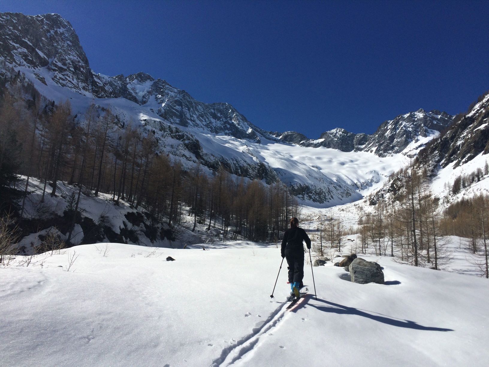Da queste parti, tra i piccoli larici e i blocchi di serizzo che emergono dalla scarsa neve residua dell’inverno doveva trovarsi la vecchia baita Nuccia dei Lenatti. Il piccolo rifugio inaugurato nel 1925 all’inizio della Val Sissone fu poi ceduto al CAI Milano che ne cambiò il nome dedicandolo a Giovanni Pigorini.