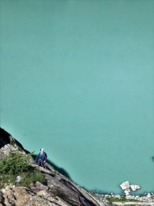 Nella foto: arrampicata al fresco dei 2200 metri sulle pareti che sovrastano il lago di Gera.