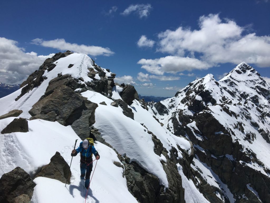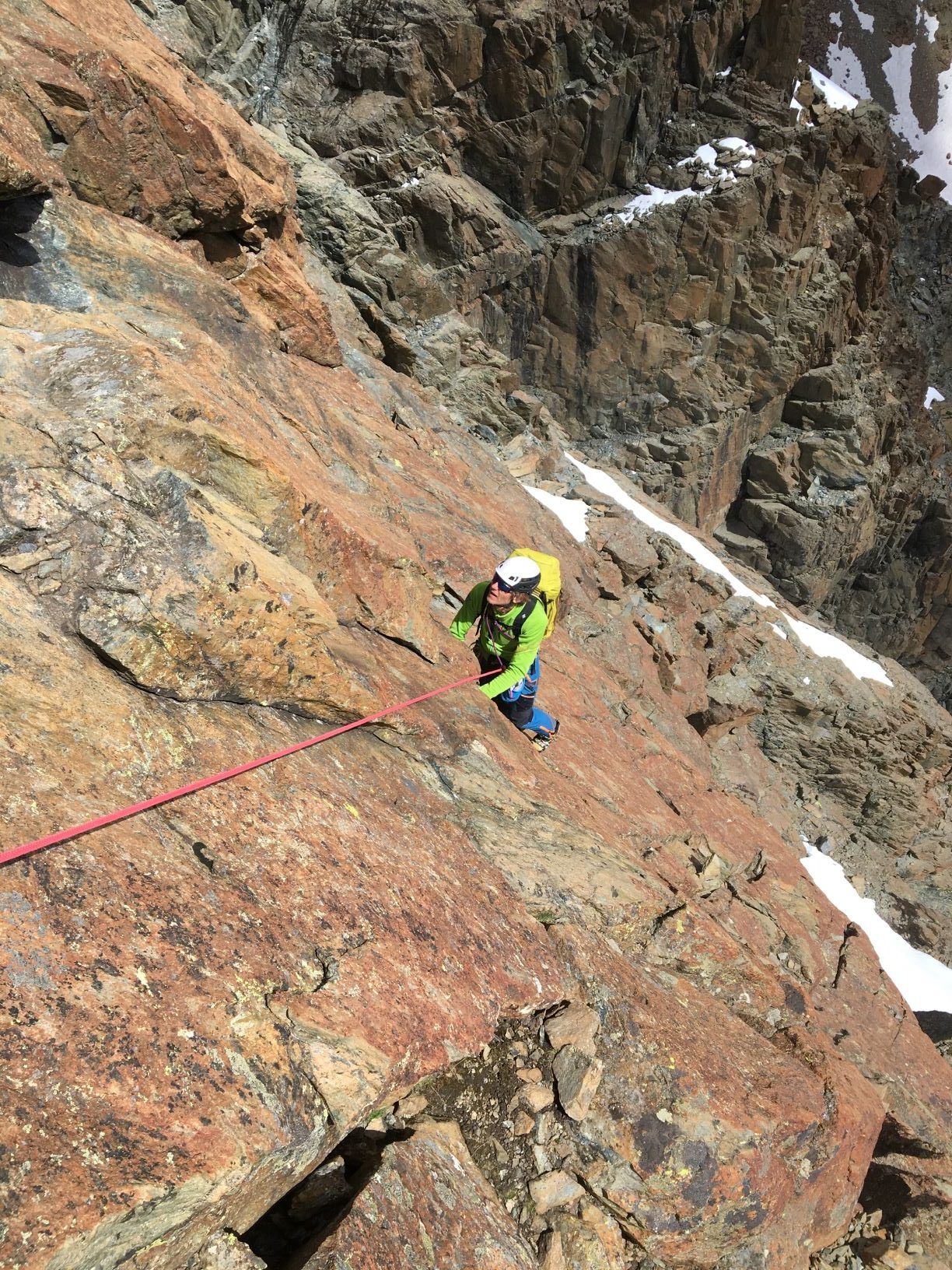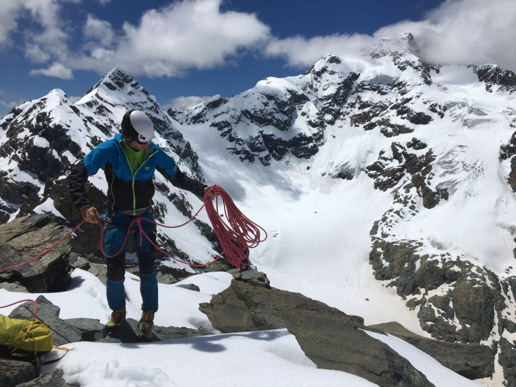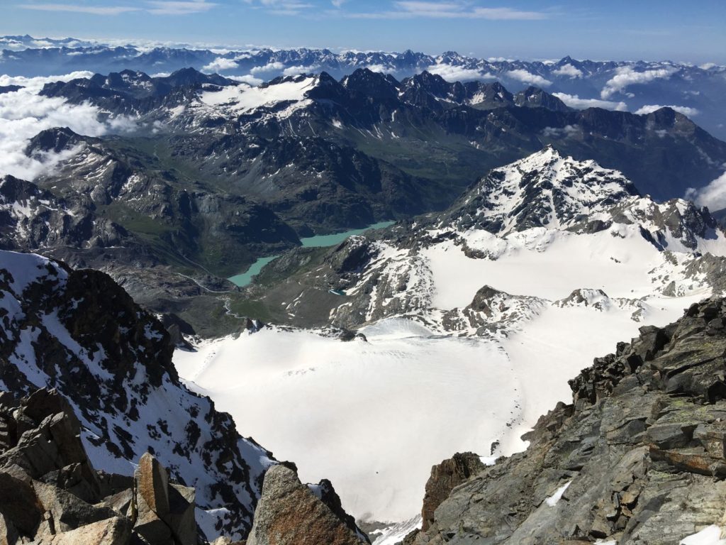 Attraversare lo Scerscen superiore nella nebbia è un piccolo bagno d’umiltà. Muoversi dentro un muro di niente, sfidando una coltre spessa quanto inesistente ci riporta con i piedi per terra.