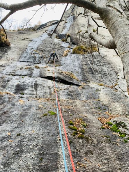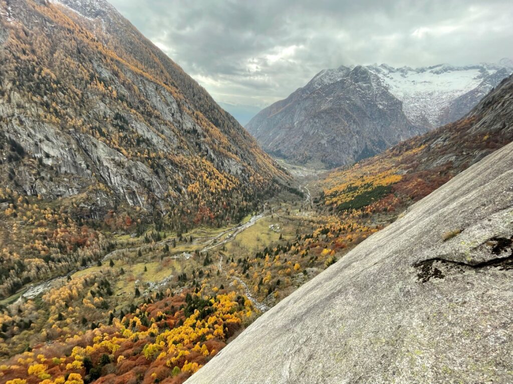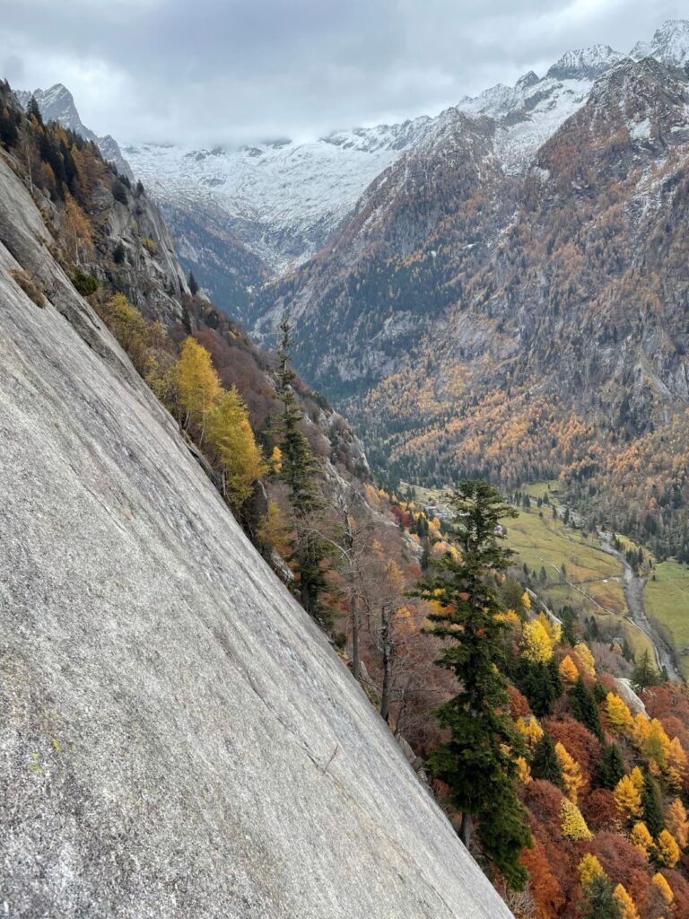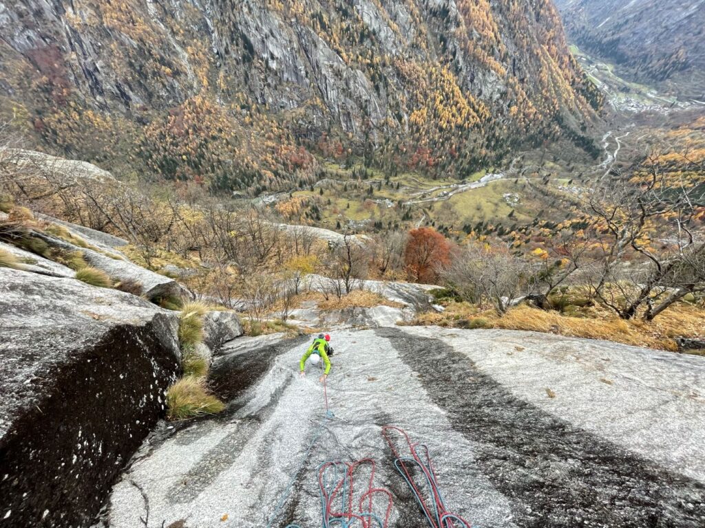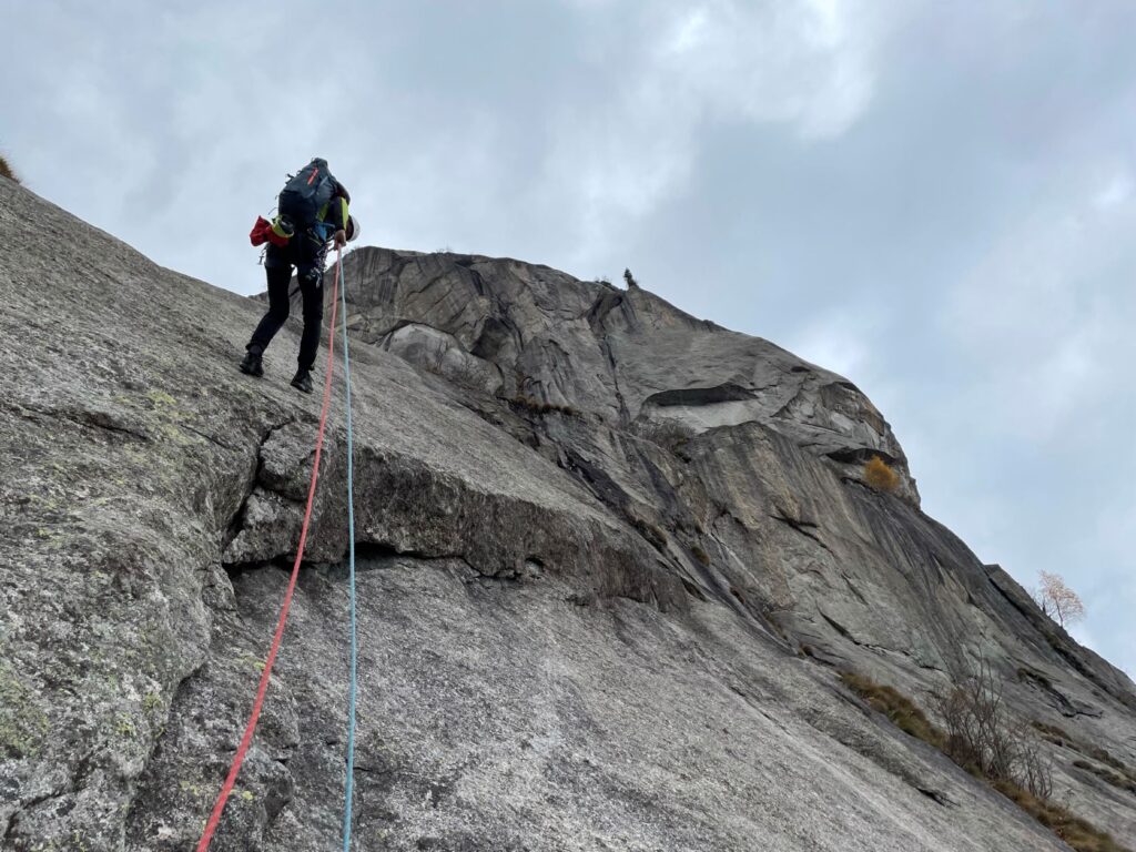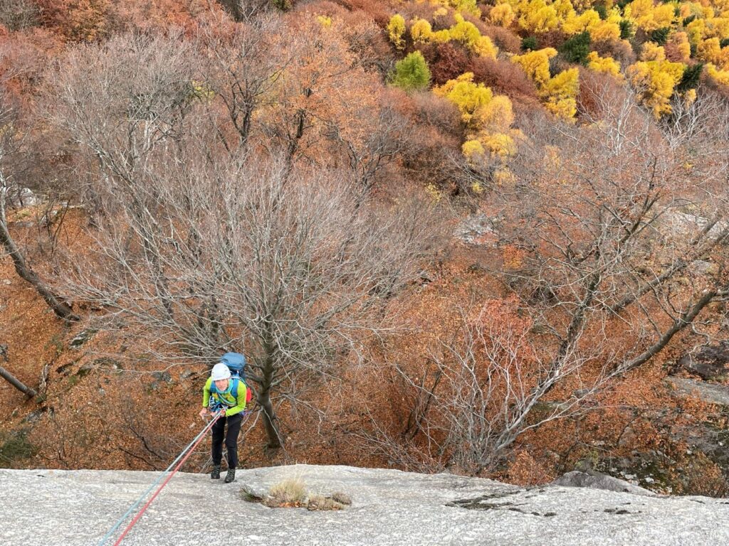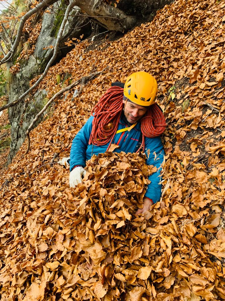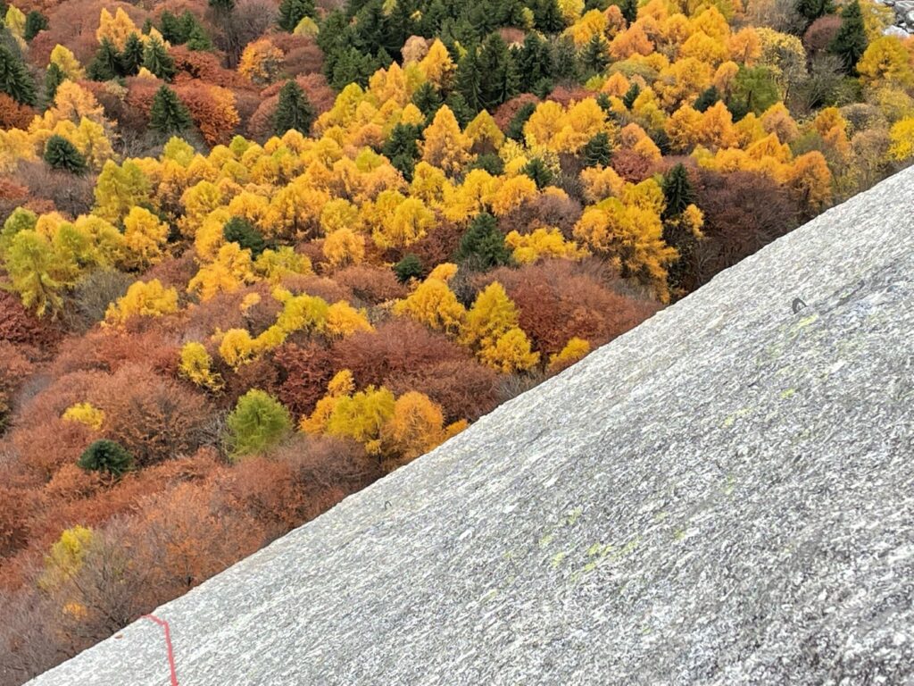 Non è sufficiente farsi centinaia di metri di scalata, occorre avvertire con lucidità la propria presenza tra le rocce. In fondo la serenità di un luogo, la sua bellezza, è soprattutto un fatto di sguardo, un privilegio accordato in una mattina d’autunno, con le foglie da soffiare via dagli appigli, con la pioggia è in arrivo.