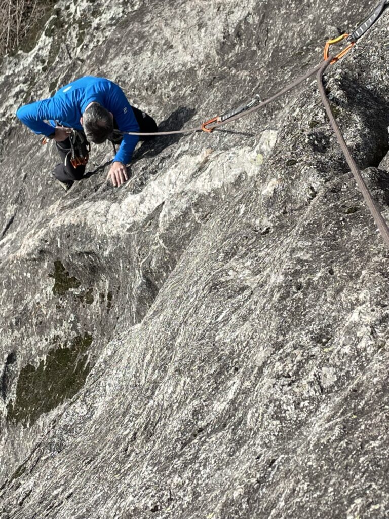 L’arrampicata dell’anno nuovo inizia in discesa. Anche le vie più semplici trovano nuovi significati quando percorse non solo in salita. Abbandoniamo la consuetudine della calata, con le nostre forze esploriamo appigli ed appoggi e arrampichiamo in discesa. La roccia si espande, la cordata si rovescia, si allarga lo sguardo, si sperimentano nuove posture ed equilibri.