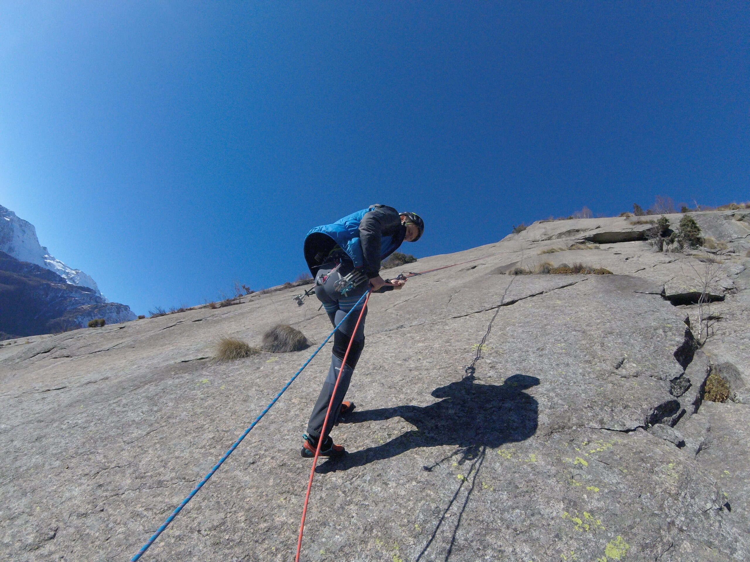 Entriamo in contatto diretto con le più belle placche di serizzo del Masino in questo inverno che non c’è.
