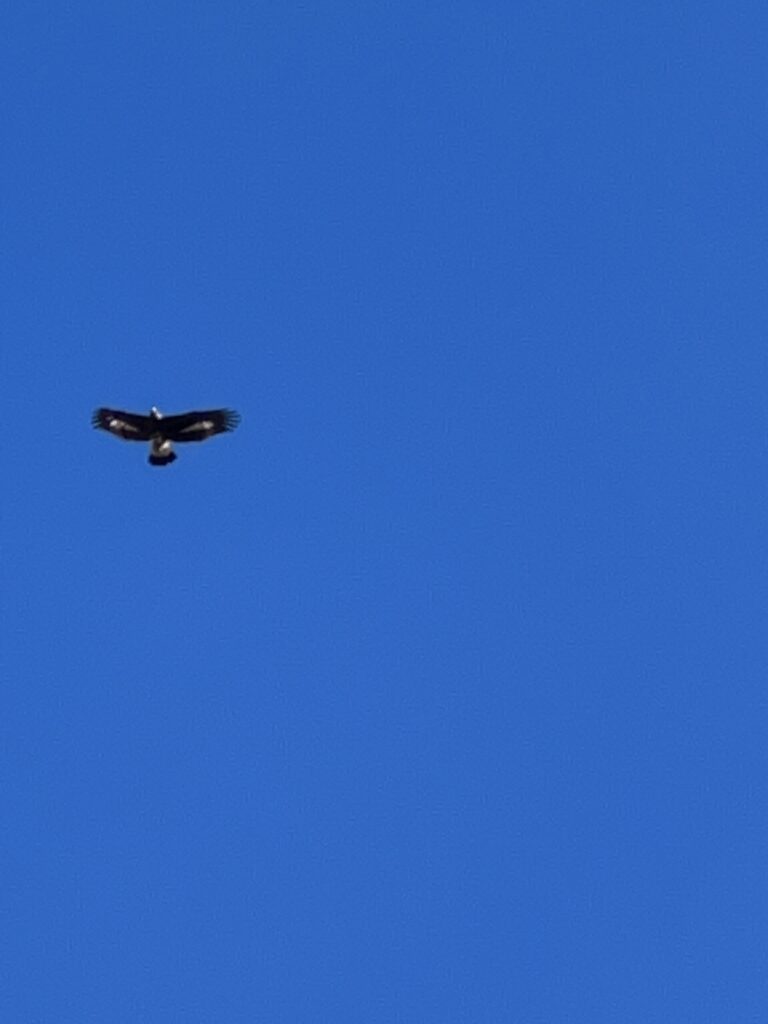 L’aria è pulita e si vede lontano. Una grande aquila volteggia nel cielo blu sopra di noi.