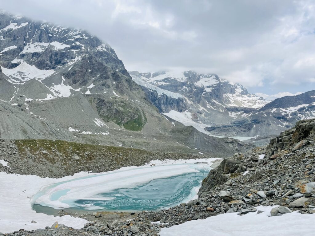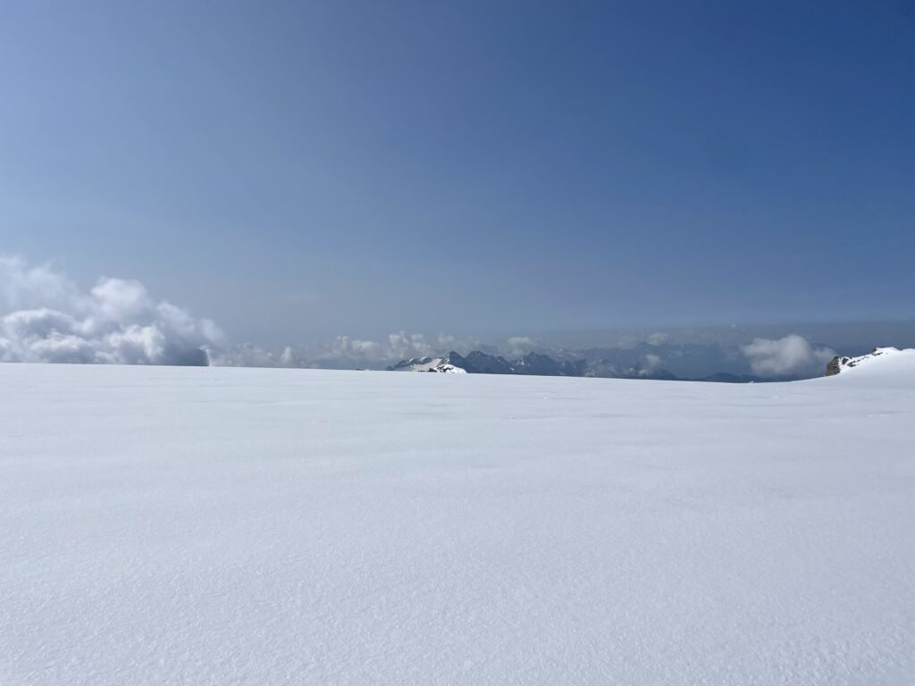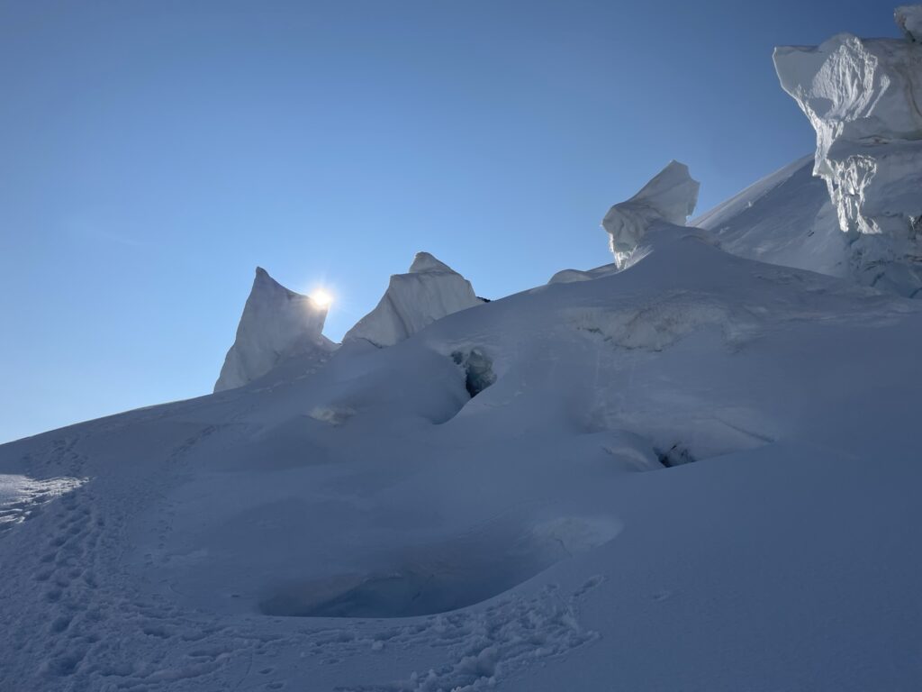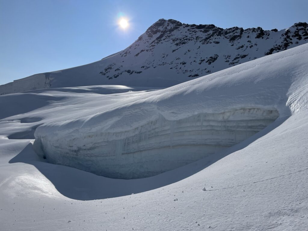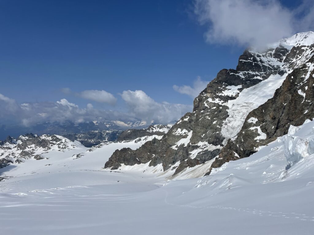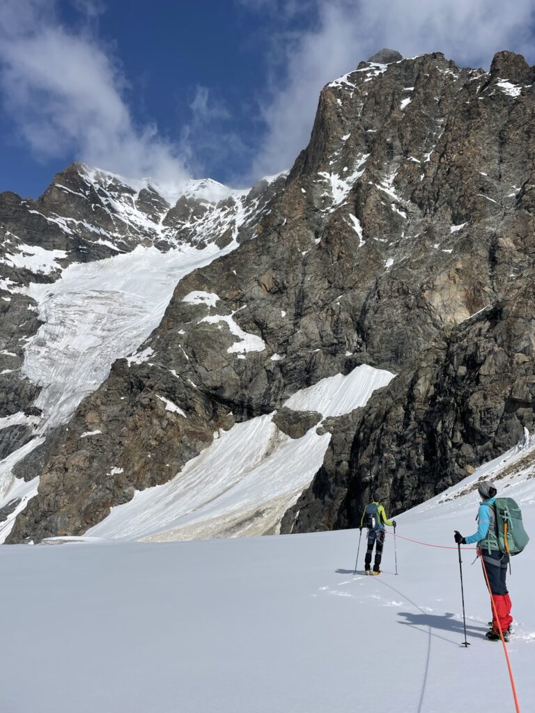 Quassù, oltre i 3500m resistono gli spazi vitali del ghiacciaio.