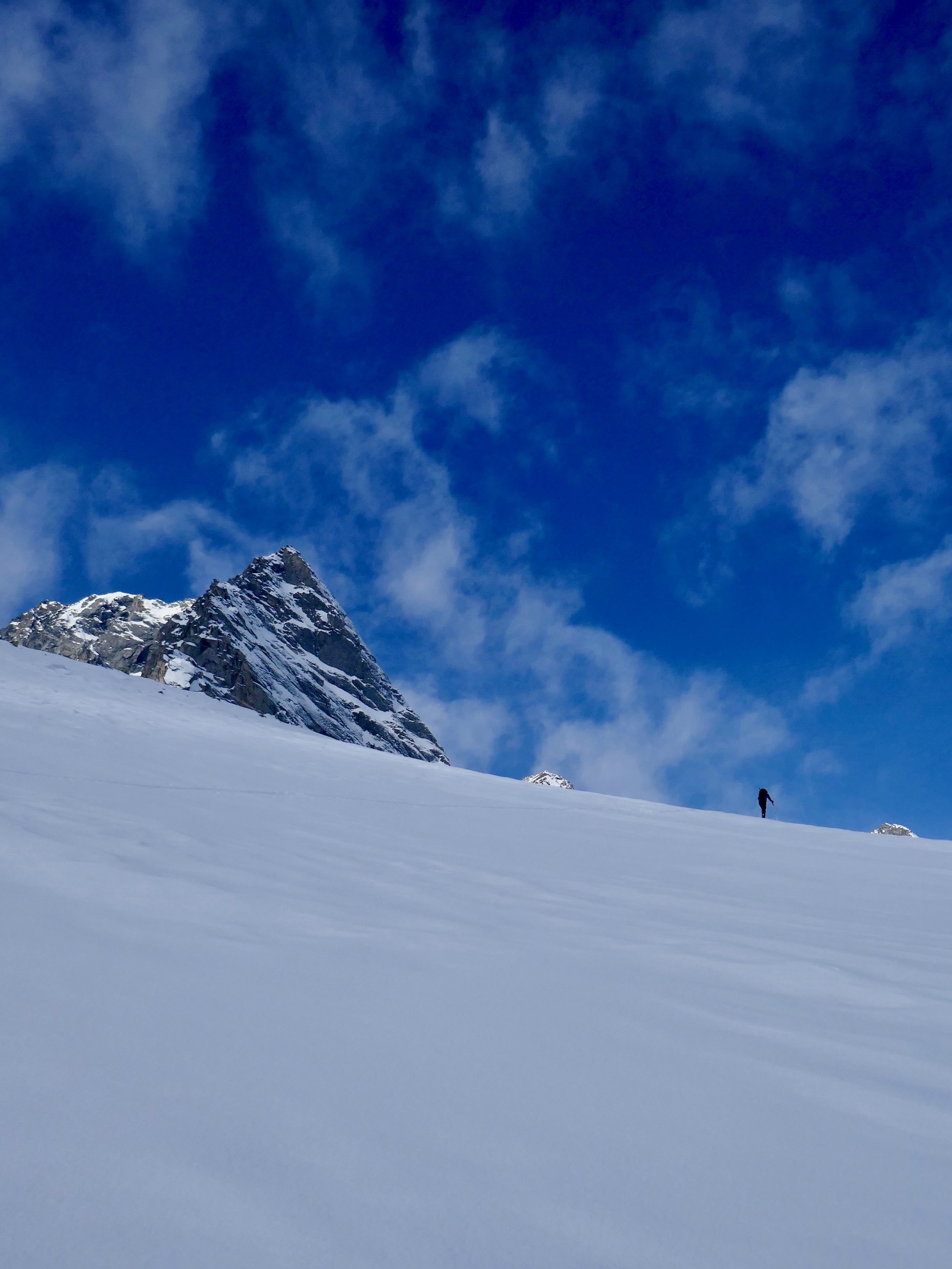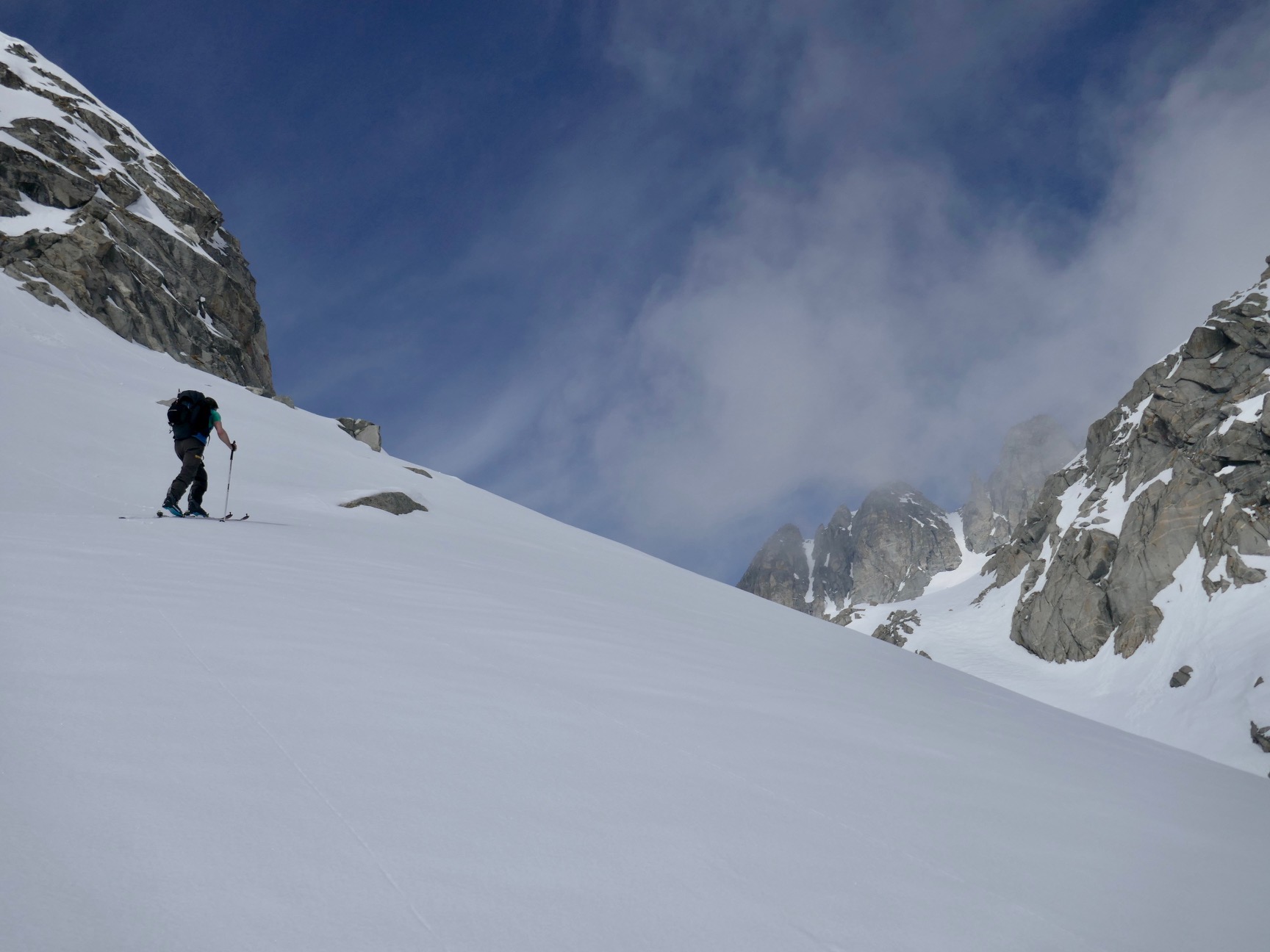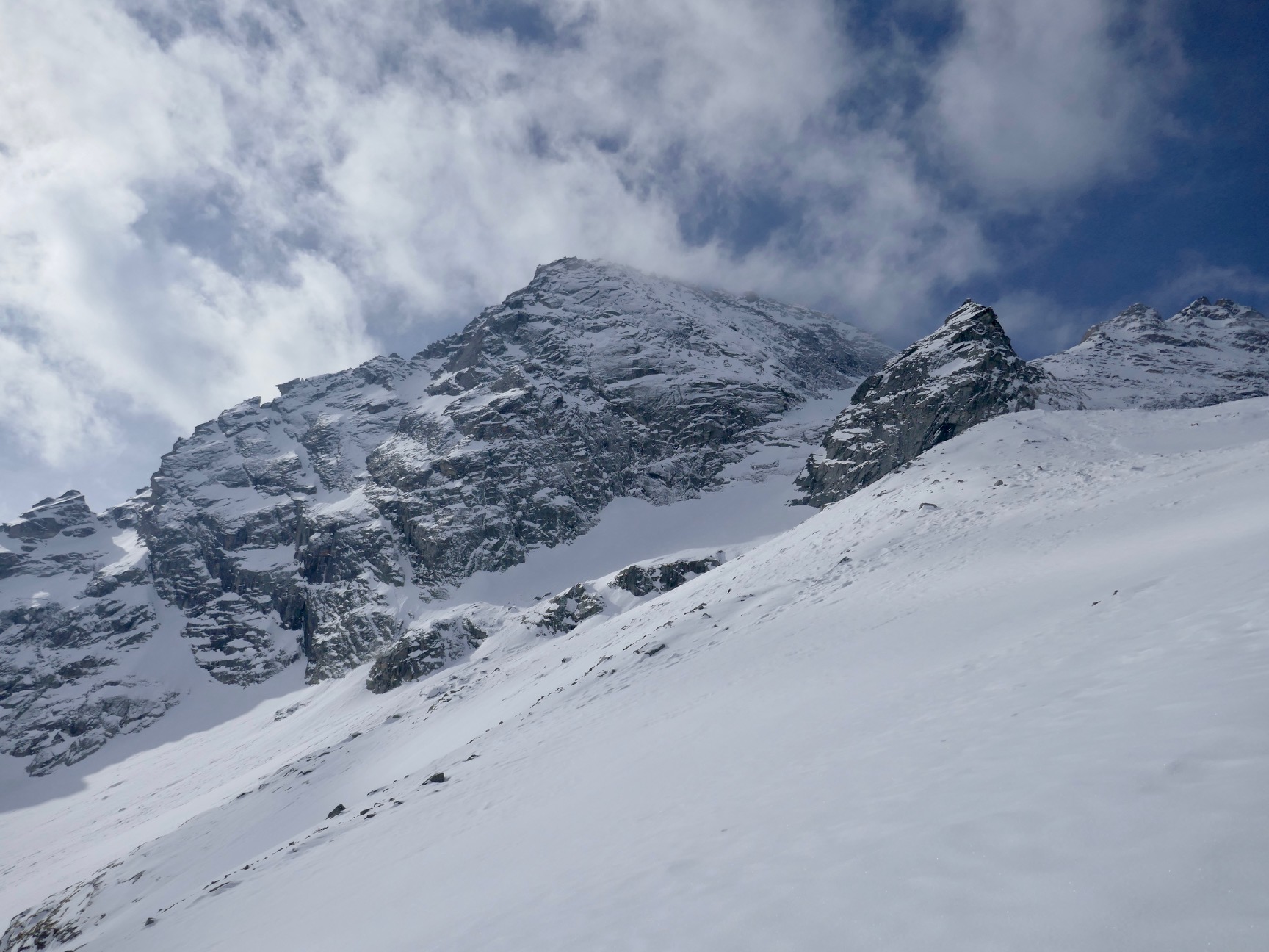 “Adesso fate voi la traccia. Tenete il margine dell’ombra proiettata dal Pizzo Giumellino sul ghiacciaio del Ventina, poi uscite al ripiano superiore.”