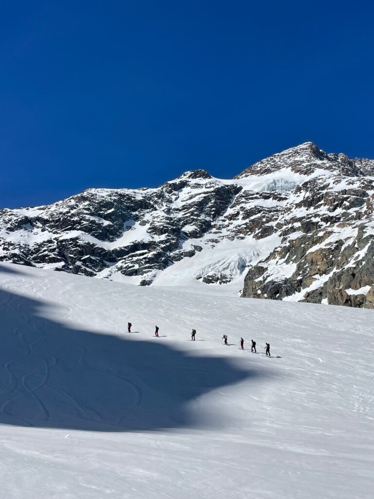 Sono sciatori agonisti, abituati a ritmi, pali, ripetizioni. Qui invece il gesto cambia, si allunga, si distende. La salita con le pelli diventa un esercizio nuovo, a tratti ancora da capire. Ma è lì che si apre lo spazio interessante, nell’imprecisione iniziale, nel passo che cerca un equilibrio diverso, nell’ascolto.
